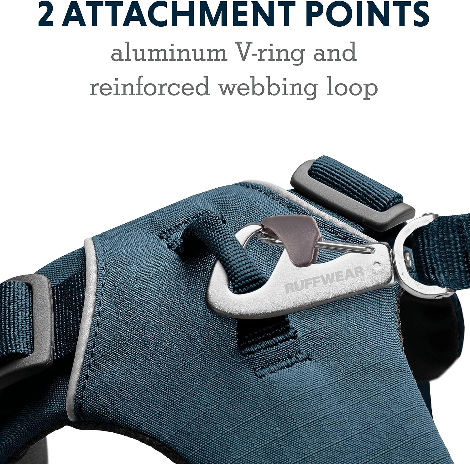 Een sterk harnas van Ruffwear. Lichtgewicht en duurzaam Ruffwear hondenharnas gemaakt voor de hele dag outdoor avonturen en ontworpen voor eenvoudige bevestiging en verwijdering.