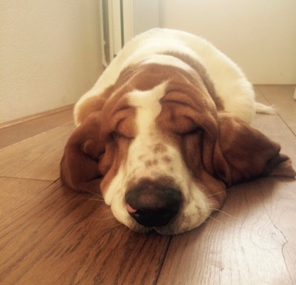 Onze verschillende honden hebben ook uiteenlopende namen gehad. Onze schnauzer heette Rakker, de dalmatiër Daimey, de Engelse Bulldog Sam en onze Basset Hound Bo.